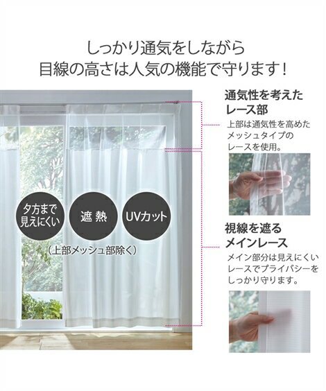 他のサイズは以下をご覧ください 幅100×長さ90cm はこちら 幅100×長さ110cm はこちら 幅100×長さ135cm はこちら 幅100×長さ150cm はこちら 幅100×長さ178/幅200×長さ178cm はこちら 幅100×長さ200/幅200×長さ200cm はこちら 幅100×長さ230/幅200×長さ230cm はこちら 幅150×長さ135cm はこちら 幅150×長さ178cm はこちら 幅150×長さ200cm はこちら 幅150×長さ230cm はこちら風が通って換気ができる!遮熱・夕方まで見えにくい・UVカットレースカーテン ニッセン nissen 白 カラー 白 サイズ 15・幅100×長さ183cm×2枚 素材 ●セット内容:サイズ10〜27は2枚セット、34〜37は1枚 ●品質:ポリエステル100% ●紫外線カット率=81% ●アジャスターフック付 ※幅100cm以外の商品は継ぎ目が入ります。