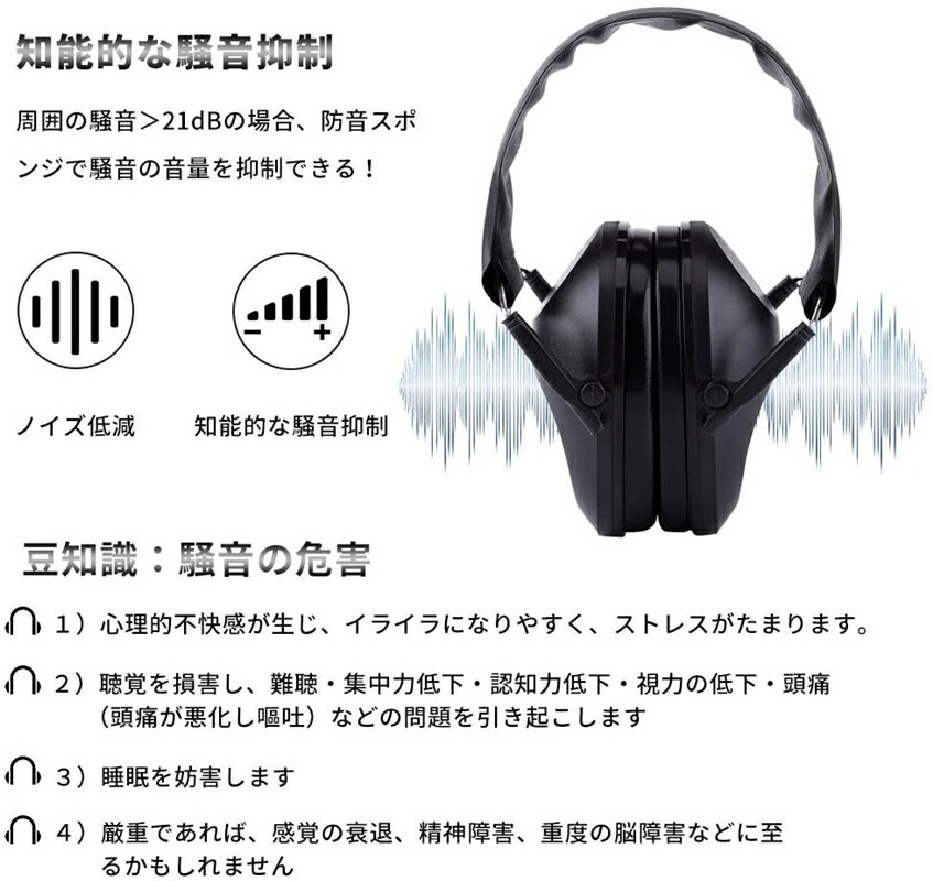 【商品仕樣】: 素材:ABS、スポンジ NNR(ノイズ減少率):21 dB。