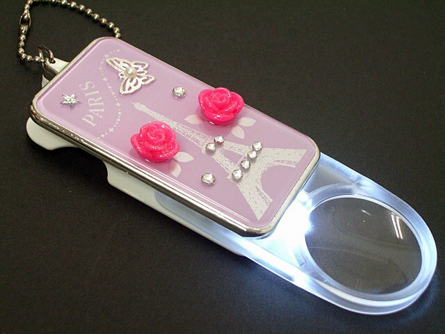 【3/21(木)まで5%クーポン】ルーペ ledライト付き チェーン付き 3倍 拡大鏡 眼鏡 老眼鏡 カメオ エッフェル塔 クローバー 携帯用 レディース 可愛い