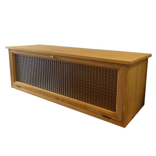 横型キャビネット フローラガラス アンティークホワイト 90x17x20cm 木製 ひのき 受注製作