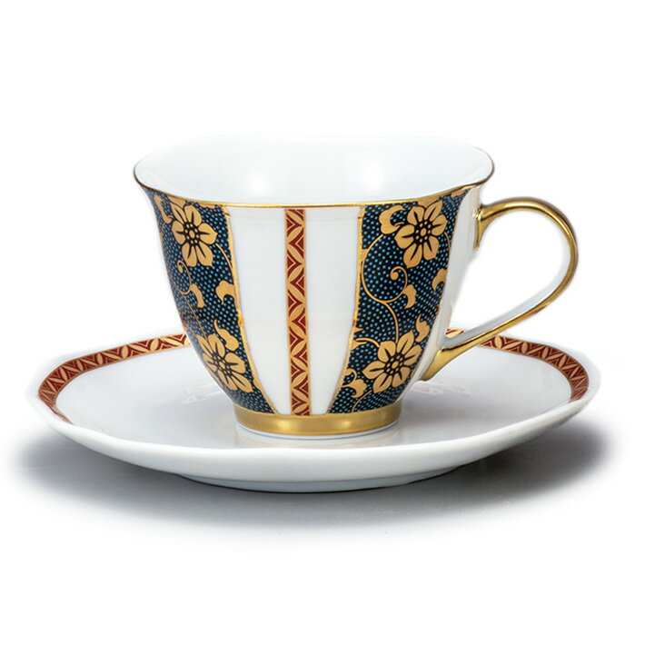 【素敵なご夫婦への贈り物♪】九谷焼 ペア コーヒーカップ & ソーサー セット 鉄仙文( 陶器 和風 誕生日 銀婚式 結婚記念日 両親 妻 夫 ギフト お祝い プレゼント 新築祝い 贈り物 食器 友人 )